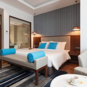 Grand Deluxe King là hạng phòng cơ bản tại D’Lecia Hạ Long với lựa chọn 1 giường king size. Phòng được sơn màu be kết hợp với màu sắc đặc trưng của chất liệu gỗ – nâu sẫm và nội thất hiện đại sẽ đem đến cảm giác vô cùng thoải mái và thư thả.