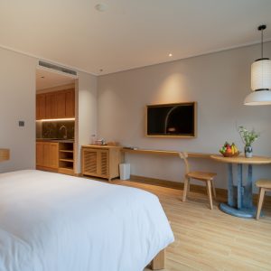 Phòng King Studio hiện đại tại Nam Đạt với giường King . Phòng được kết hợp với màu sắc đặc trưng của chất liệu gỗ – nâu sẫm và nội thất hiện đại sẽ đem đến cảm giác vô cùng thoải mái và thư thả.