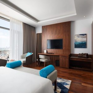 Phòng Premier Deluxe King trang nhã tại D’Lecia Hạ Long với 1 giường king size và khu vực diện tích phòng lên tới 30m2. Premier Deluxe King được được bố trí nằm ở tầng cao nhất giữa toà nhà, sẽ là một không gian riêng tư, yên tĩnh để làm hài lòng mọi nhu cầu của quý khách.