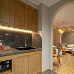 Căn hộ 01 hiện đại tại Nam Đạt. Phòng được kết hợp với màu sắc đặc trưng của chất liệu gỗ – nâu sẫm và nội thất hiện đại sẽ đem đến cảm giác vô cùng thoải mái và thư thả.